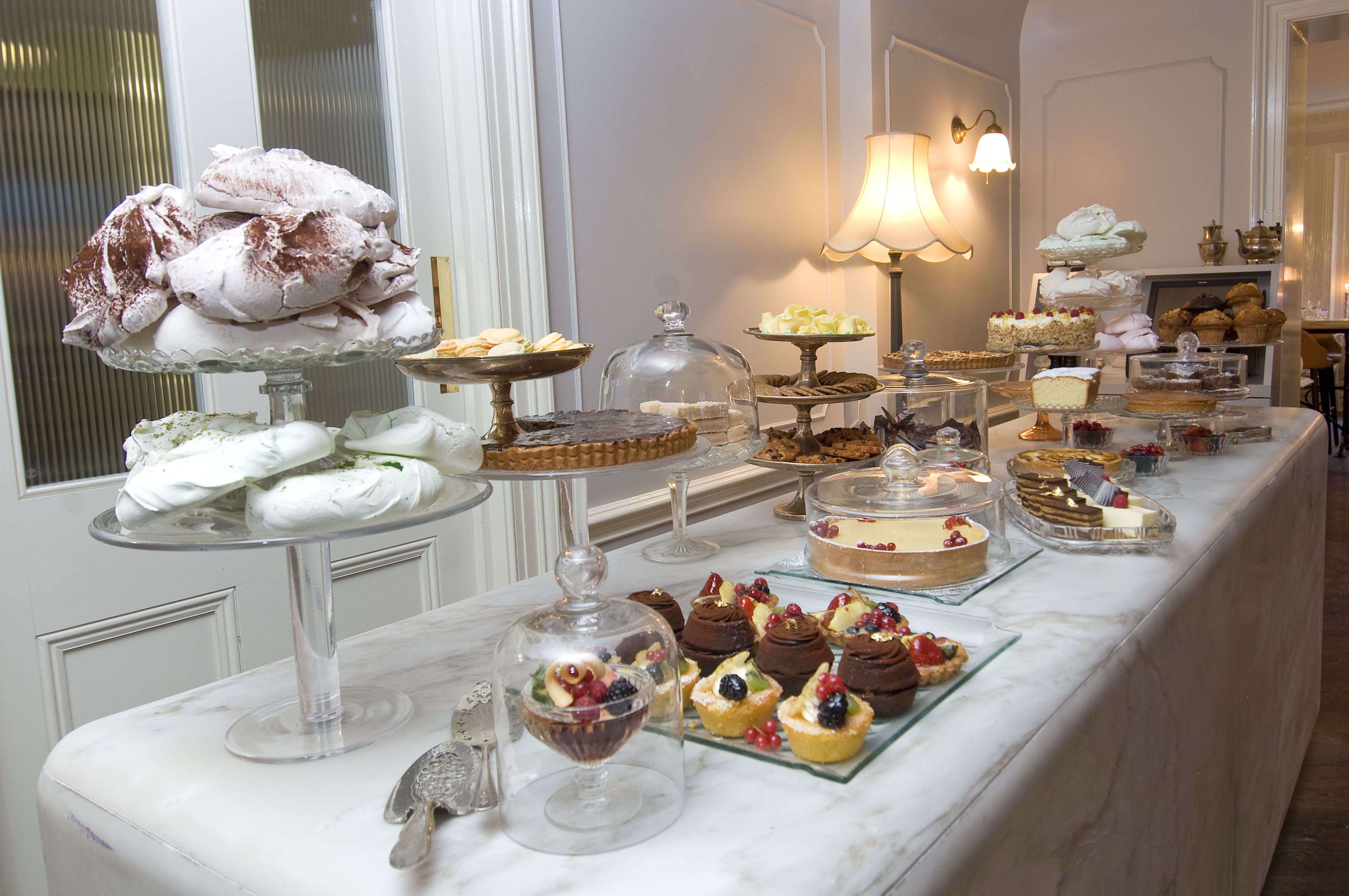 As we slid into our seats, after gawping at the oversized rose tinted meringues and grand Victoria sponges on a truly magnificent cake spread table, we removed our wet jackets, and dispelled all prior grumbles at the never-delivering-when-required British weather and directed all attention to this timeless British tradition. Exquisitely put together sandwiches, fat-fuelled clotted cream piled high on jam spread scones and an assiette of desserts to leave you blinking in excitement of where to start, all crammed colourfully onto a three tiered wire cake stand. Effortlessly elegant and deviously mischievous.